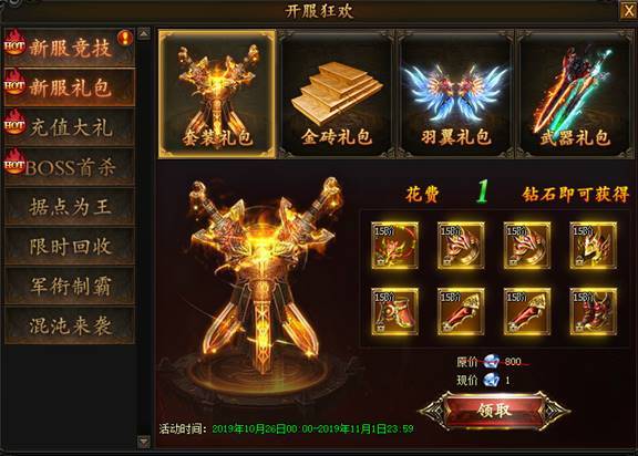 活动期间,收集指定的装备,即可换取钻石奖励。