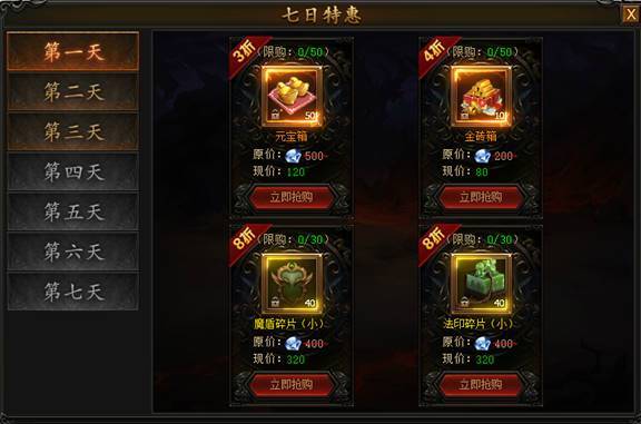 活动期间,可以超低折扣买到实惠道具,终身一次。